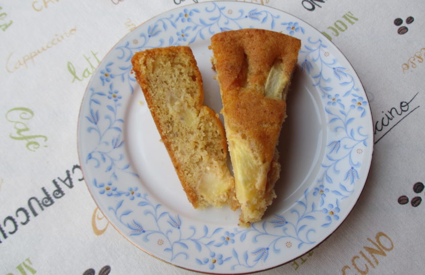 Letzte Woche hatte ich doch den Blaubeerkuchen gebacken und da der Teig besonders lecker war, habe ich den noch einmal gemacht, diesmal aber mit Apfelspalten: