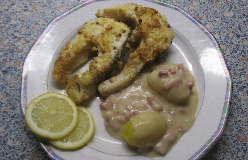 Mit Pellkartoffeln und einer Zwiebel – Specksoße (Firreler – Stipp sagt man bei uns hier in Ostfriesland) hat es uns hervorragend geschmeckt.