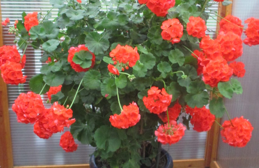 Jetzt können wir die Blumen schon bald zurückschneiden, damit sie vor dem ersten Frost ins Winterquartier kommen. Aber eine Weile dürfen sie noch blühen, wir haben ja erst Oktober.