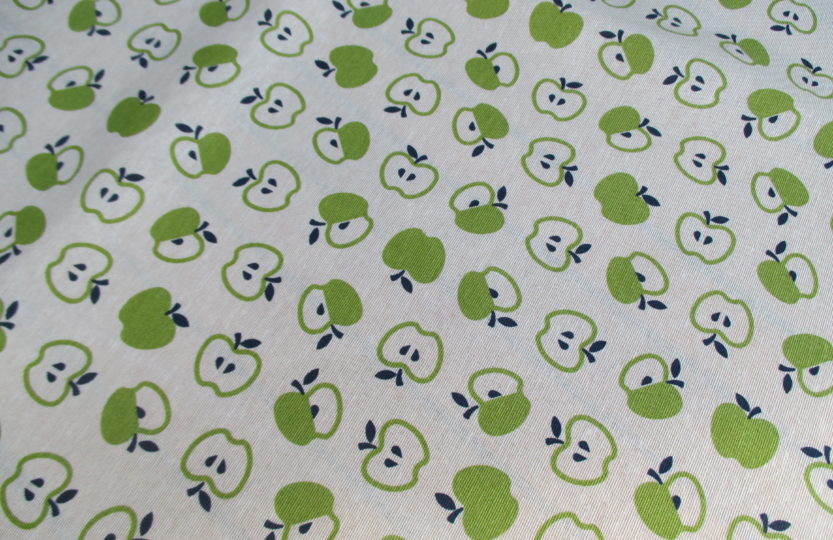 Aber jetzt zum Frühling hin habe ich einen tollen Stoff gefunden, mit frisch – fröhlichen Apfelmotiven.