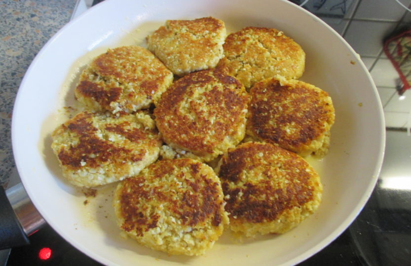 gerührt. Die Masse hatte noch zu wenig Geschmack und da habe ich 1 Esslöffel Kräuter – Schmelzkäse und noch 1 Spritzer Maggiwürze dazu gegeben. Kurz durchziehen lassen und dann daraus runde, flache Bällchen geformt.