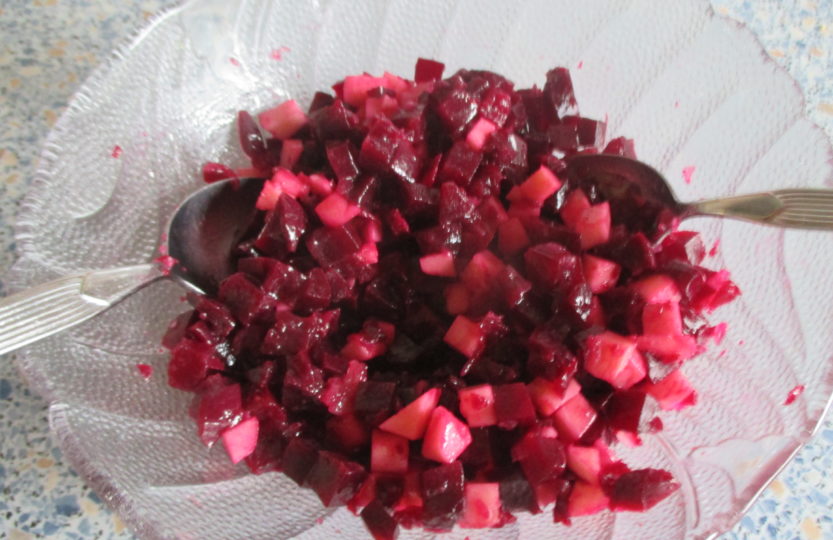 Heute erzähle ich euch, was ich mit den kleinen Scheiben, die ich gestern von den roten Beeten abgeschnitten habe, gemacht habe.